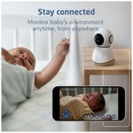 O monitor de bebê 2K Ultra HD oferece transmissão ao vivo com imagens nítidas durante o dia e visão noturna avançada. A câmera também possui controle remoto para panorâmica, inclinação e zoom, permitindo que você fique conectado ao seu bebê mesmo à distância.