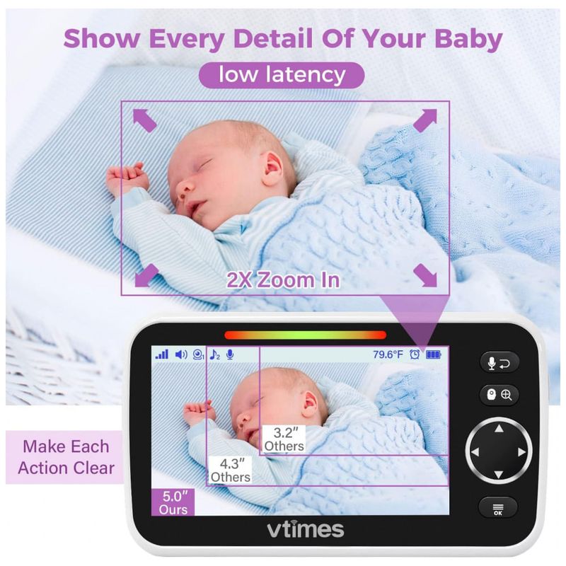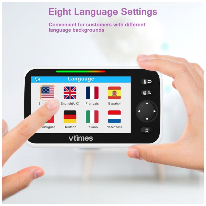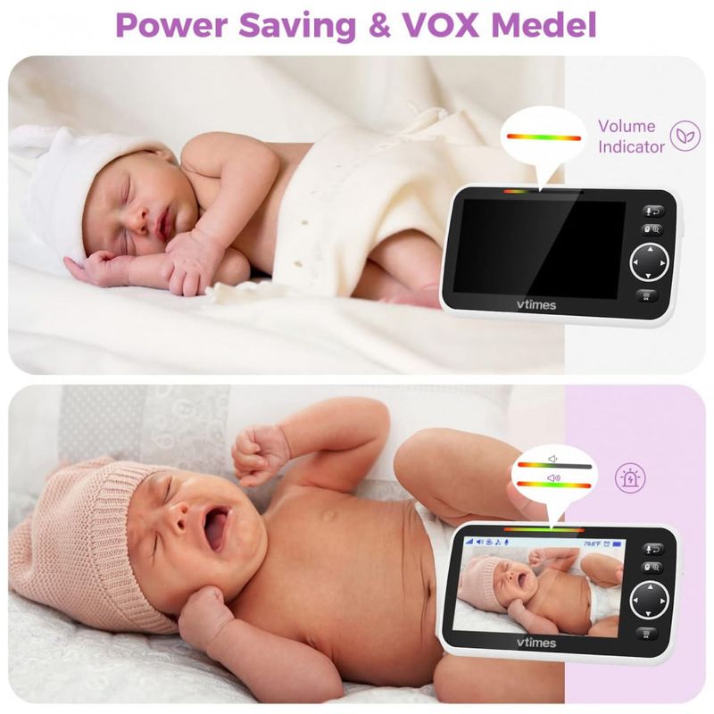 O Monitor de Bebê da VTimes possui uma tela LCD colorida de 12 cm com tecnologia sem fio, proporcionando uma visualização nítida e abrangente. Com zoom de 2x, monitoramento de temperatura e reprodução de 8 canções de ninar. Além disso, conta com comunicação bidirecional para conversar com seu bebê, visão noturna automática, alerta de voz, entre outras funcionalidades inteligentes. O monitor dorme automaticamente para economizar energia e pode ser expandido para até 4 câmeras.