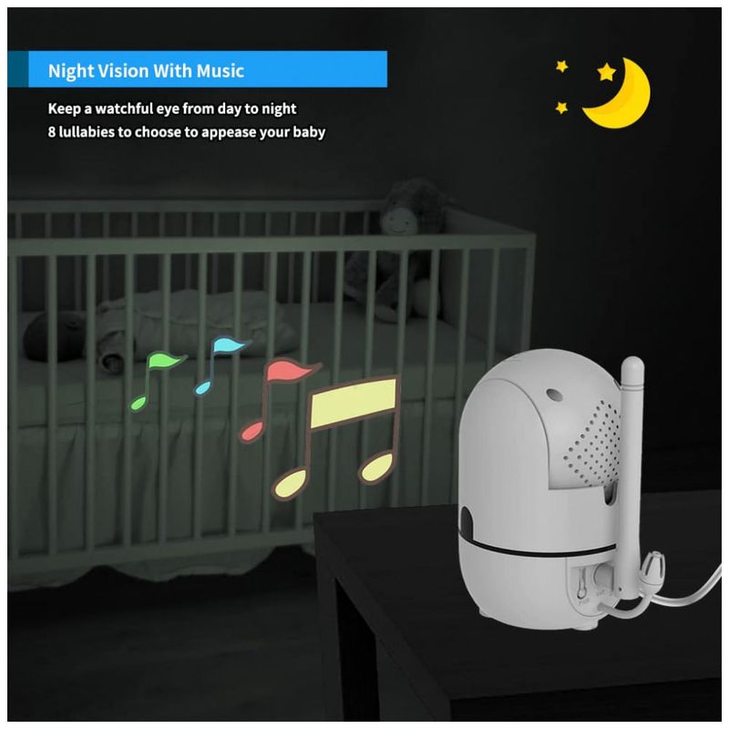 VISÃO NOTURNA INFRAVERMELHA E ÁUDIO VÍDEO DE 2 VIAS BABY MONITOR MONITOR BABY A visão noturna nítida oferece uma visão clara do seu filho enquanto ele dorme. Somos a primeira marca a adotar o monitor de bebê LED infravermelho invisível, você pode ter um feed de vídeo nítido à noite sem interromper seu bebê.