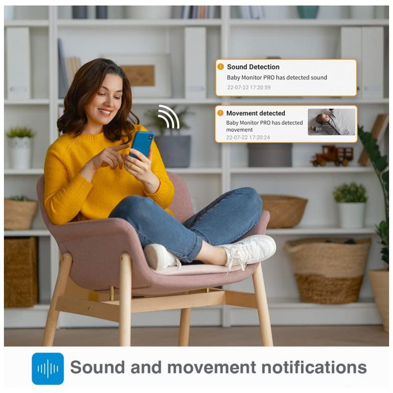 NOTIFICAÇÕES DE APP INSTANTÂNEO E WIFI O LED de 8 infravermelhos garante imagens nítidas e permite verificar sem esforço a situação da vida do seu bebê enquanto você fica na cama à noite. A câmera Full HD 1080p está disponível apenas quando você aplicou o plano de serviço em nuvem detecta movimento e envia um alerta ao seu telefone. Usando o recurso de reprodução de vídeo, você pode ficar com as coisas sem precisar monitorar constantemente o aplicativo.