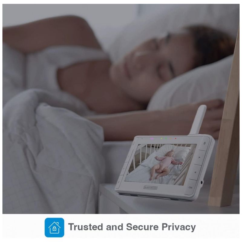 Monitor de bebê de vídeo inteligente PRETO DECKER avançado com uma tela de 5 polegadas e um sensor de imagem Full HD 1080p. Dá uma janela clara de cristal ao mundo do seu bebê. O monitor do bebê pode ser conectado não apenas pela tela em casa, mas também pelo aplicativo no telefone quando você estiver fora.