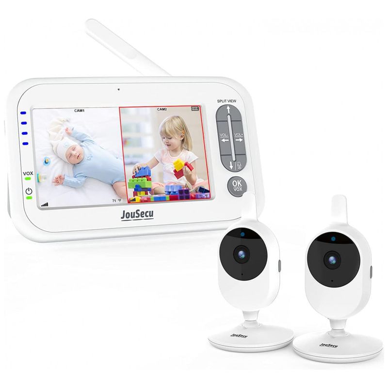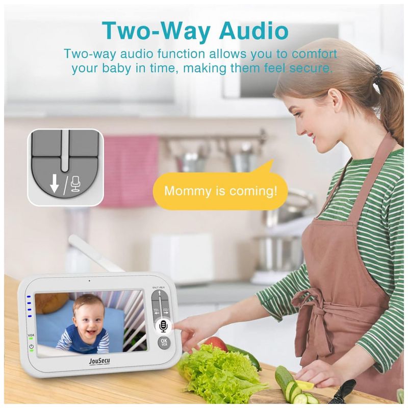 Assistindo 2 quartos ao mesmo tempo Este monitor de vídeo para bebês está equipado com 2 câmeras e recurso SPLIT SCREEN, prestando atenção aos seus filhos lado a lado e não perderá mais nenhum momento importante e comportamentos fofos deles. Seus bebês merecem o melhor atendimento.