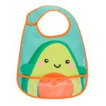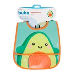 O Babador Frutti Avocado da Buba possui tecido impermeavel e bolso pega migalhas,ideal para proteger a roupinha do bebe.