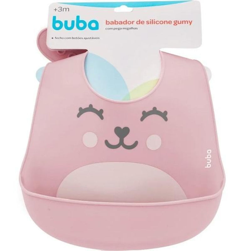 O Babador de Silicone Gumy da Buba é super prático e higiênico.