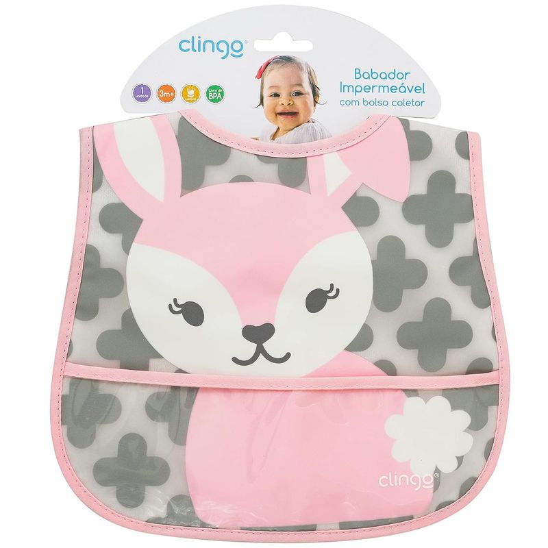 O Babador impermeável CLINGO é ideal para a hora da alimentação.