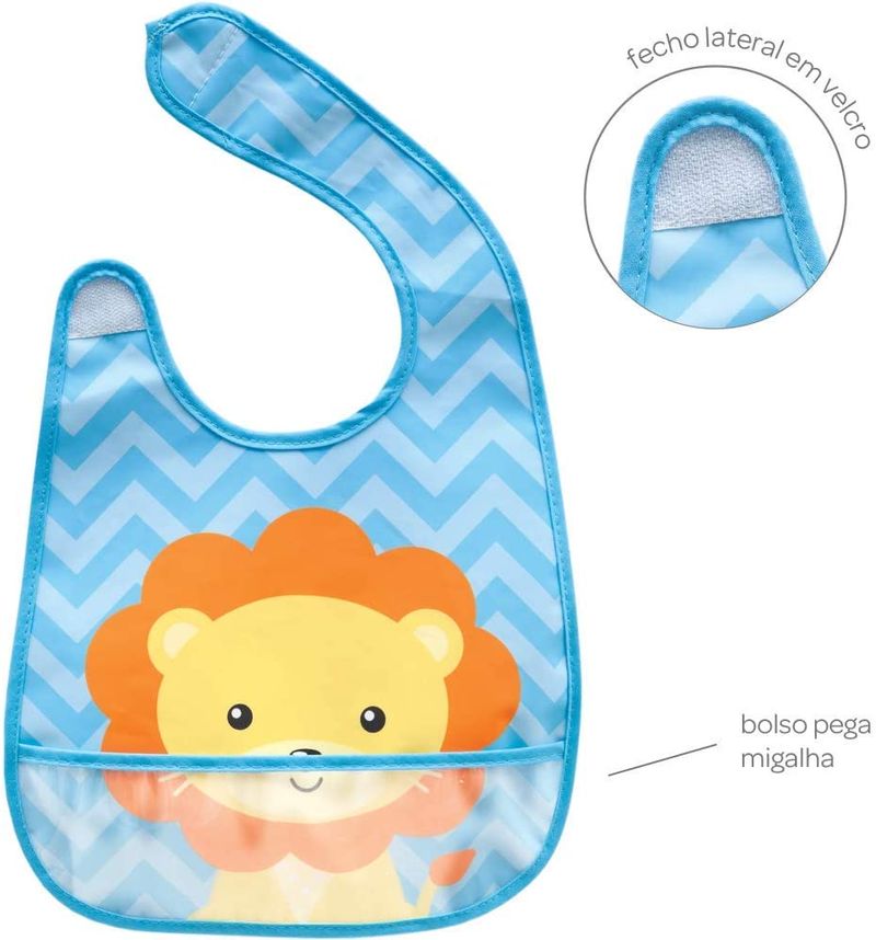 Babador Impermeável com Bolso - Animal Fun - Leão - Buba