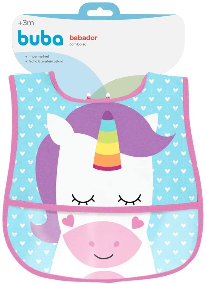 Babador Impermeável com Bolso - Animal Fun - Unicórnio - Buba