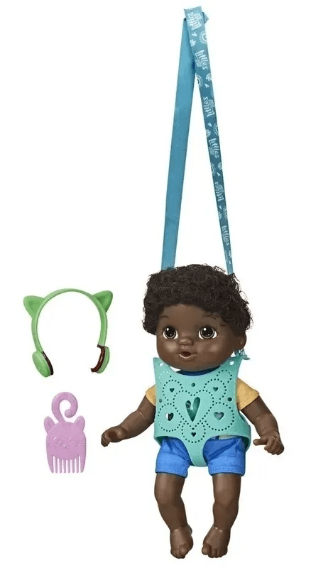 Esta variedade inclui 6 Littles diferentes. Cada bebê vem com um portador de bebê, fones de ouvido e um pente para estilizar seu cabelo enraizado.