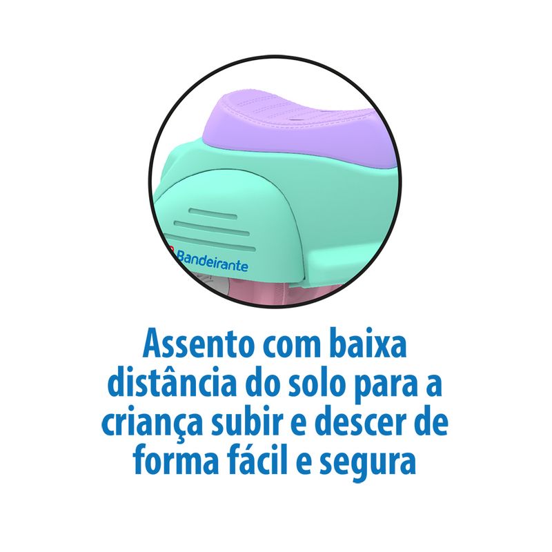 A função equilíbrio permite que a criança impulsione o brinquedo com os pés, estimulando o desenvolvimento do equilíbrio e da coordenação motora de forma natural e divertida. Possui três fases de aprendizado: Primeiros passos Treinamento Domínio do equilíbrio Equipado com chip sonoro e farol com luz de LED, proporcionando uma experiência ainda mais interativa. A estrutura com dupla camada garante maior durabilidade e resistência, tornando o brinquedo seguro e robusto. Especificações Faixa etária: + 18 meses Peso máximo suportado: 30 kg Altura máxima: 106 cm Registro INMETRO: 002747/2021 | OCP: 0061