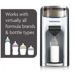 A tecnologia de mistura patenteada mistura automaticamente a fórmula e a água para uma consistência perfeita. Funciona com praticamente todas as marcas de fórmulas e todas as marcas, tamanhos de garrafas. Limpe sua máquina a cada 4 garrafas ou quando a luz indicadora do funil de limpeza acender para que o funil de mistura esteja limpo
