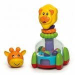 A cada argola encaixada é uma comemoração. A surpresa fica ainda melhor, apertando a cabeça dos bichinhos o brinquedo gira, fazendo as bolinhas caírem em cada plataforma da base. É muito divertido.