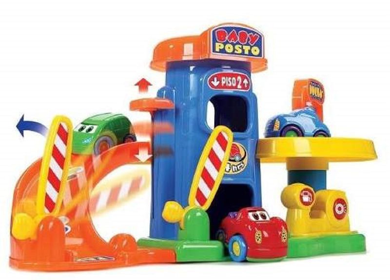 o Primeiro Postintho do Bebê. Elevador, Rampa, Lava Rápido e Cancela. Acompanha 4 Carrinhos.