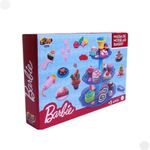 Prepare-se para dar vida à sua imaginação culinária! Perfeito para pequenas chefs, este conjunto completo te convida a criar deliciosas miniaturas de doces e salgados, explorando o mundo da culinária de forma divertida e educativa. Recursos Destacados: Massinha colorida e macia: Com diversas cores vibrantes, a massinha é fácil de modelar, permitindo a criação de diversas formas e texturas. Moldes divertidos: O conjunto inclui diversos moldes com formatos de bolos, cupcakes, donuts, frutas e outros alimentos, facilitando a criação de miniaturas realistas. Utensílios de cozinha: Rolos, cortadores e espátulas para dar vida às suas criações culinárias. Inspiração Barbie: Com a temática da Barbie, as crianças poderão criar deliciosas receitas inspiradas no universo da moda e da beleza.\n\nIdade recomendada:2-4 anos;Composição/Material:Plástico;Funciona com pilhas:Não;Brinquedo com luz:Não;Brinquedo com som:Não;Dimensões:21,7x31x7 cm;Peso:0,621 kg;Código de Barras:7908489406548;Garantia do Fornecedor:3 Meses contra defeito de fabricação;