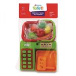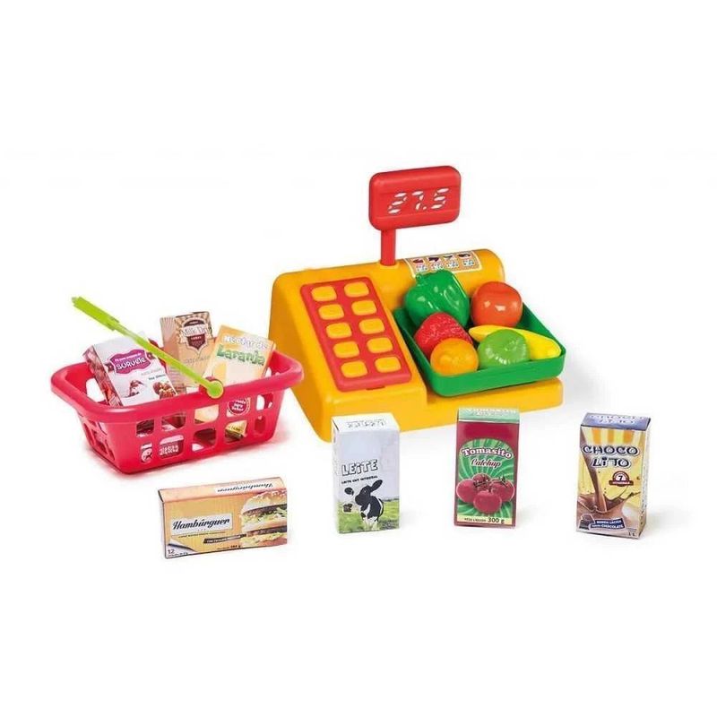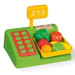 Para brincar de vender frutas, verduras, leite, gelatina, suco e até molho de tomate. É só escolher, colocar dentro da cestinha e e pesar tudo no caixa. Ah, só não pode esquecer de pesar as frutas e verduras na balança. Brincadeira do faz de conta que estimula o conhecimento geral através do aprendizado pela imitação.
