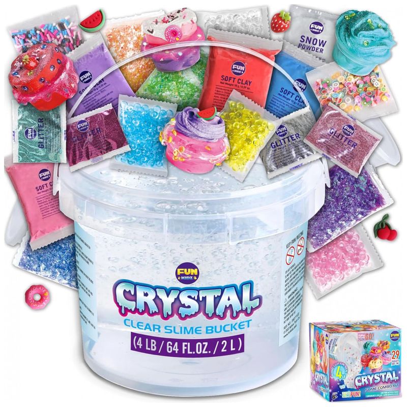O balde contém uma grande quantidade de slime transparente pré-fabricado, permitindo criar vários estilos, como slime de areia, slime brilhante, slime de espuma, slime de neve em nuvem, slime crocante, slime de cristal e slime de manteiga.