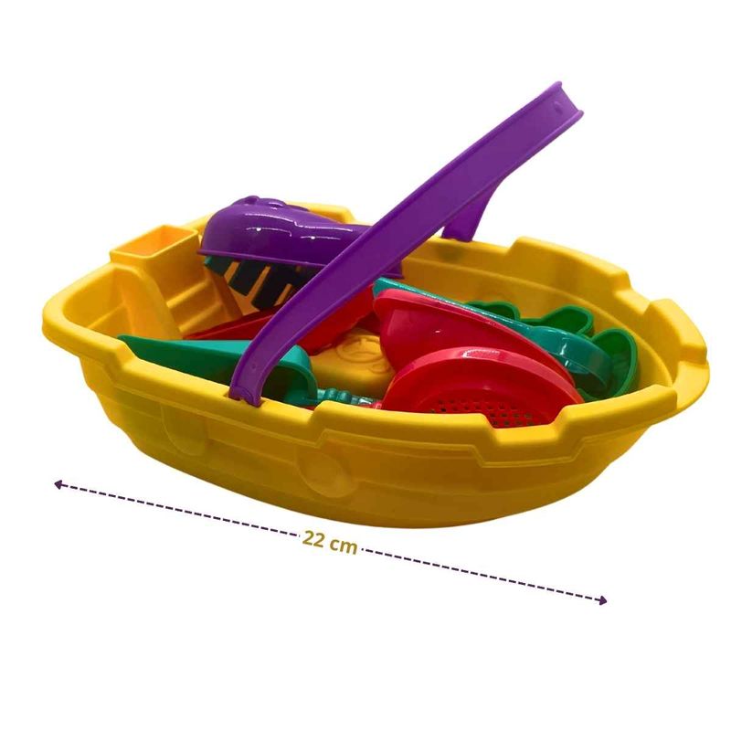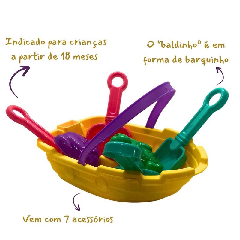 ESPORTESPRAIA E PISCINABaldinho De Praia Formato Barquinho Com 7 Acessórios, Pica Pau, Brinquedo P/ Areia Bebês +18 Meses
