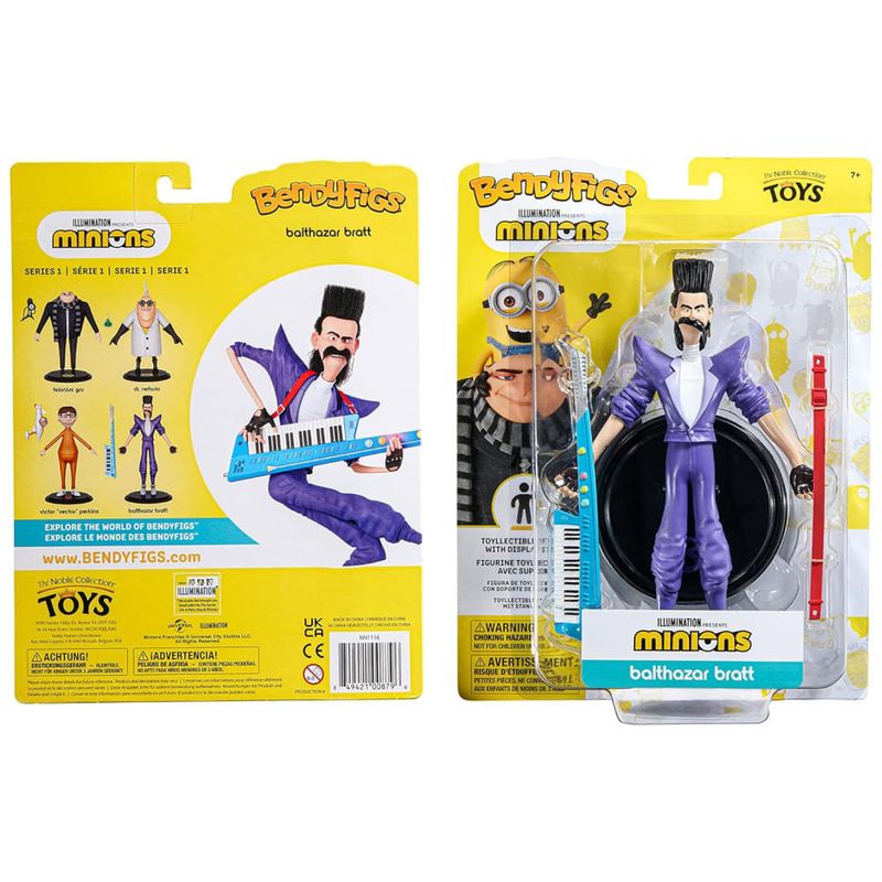 As BendyFigs são figuras colecionáveis de alta qualidade produzidas pela The Noble Collection. Esta figura detalhada e autêntica apresenta Balthazar Bratt, um personagem popular da franquia Minions. Com aproximadamente 18,41 cm de altura, a figura é dobrável e articulada, permitindo uma ampla gama de poses.