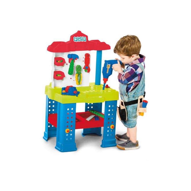 Bancada de Trabalho Tateti Este produto faz parte da linha de brinquedos educativos da Tateti e contém ferramentas para criar, montar e desmontar que possui duas frentes de trabalho coloridas e equipadas com muitas ferramentas e acessórios! Estimula a criatividade, o raciocínio na resolução de problemas e a imaginação das crianças! O kit é composto por um alicate, chave de fenda, chave de boca, chave inglesa, morsa, serrote e furadeira que fazem barulho igual aos de verdade, martelo, parafusos e porcas.