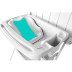 Feita com travas de arco, é firme e segura. A banheira é rígida, não dobra e nem deforma com a quantidade de água. Possui um redutor de profundidade para recém-nascidos removível que mantém o bebê sentado. O porta-toalhas mantém a toalha por perto, para que não haja dificuldades ao retirar o bebê da banheira.