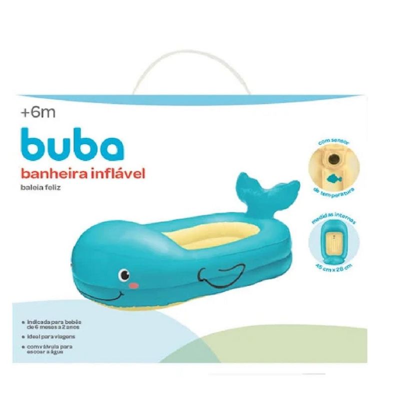 A Hora do banho do bebˆ pode ficar ainda mais divertida e prazerosa com a banheira infl vel da buba! f cil de esvaziar e dobrar, o que a torna perfeita para viagens! Recomendada para crian‡as acima de 6 meses, essa banheira da buba tamb‚m traz conforto e seguran‡a, pois possui v lvula com controle de temperatura que muda de cor se a gua estiver muito quente!