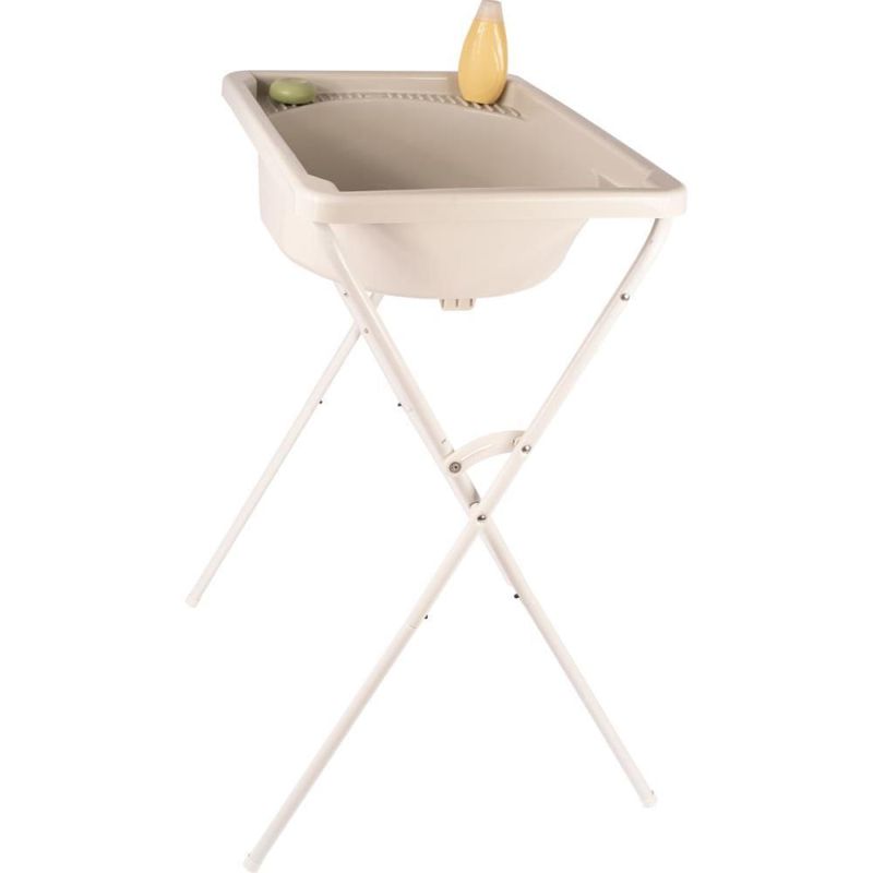 Banheira plastica com valvula ralinho, porta-shampoo e saboneteira; Capacidade total: 34 litros; Amplo espaco interno e cantos arredondados; Capacidade maxima da banheira em um suporte universal Bebe + Agua = 20 kg; Banheira 2 em 1 – pode ser utilizado no suporte ou fora; Saida de agua do tanque – ralinho facilitando a remocao da agua apos o banho; Recomendada para recem nascidos e bebes ate 1 ano ou 15kg