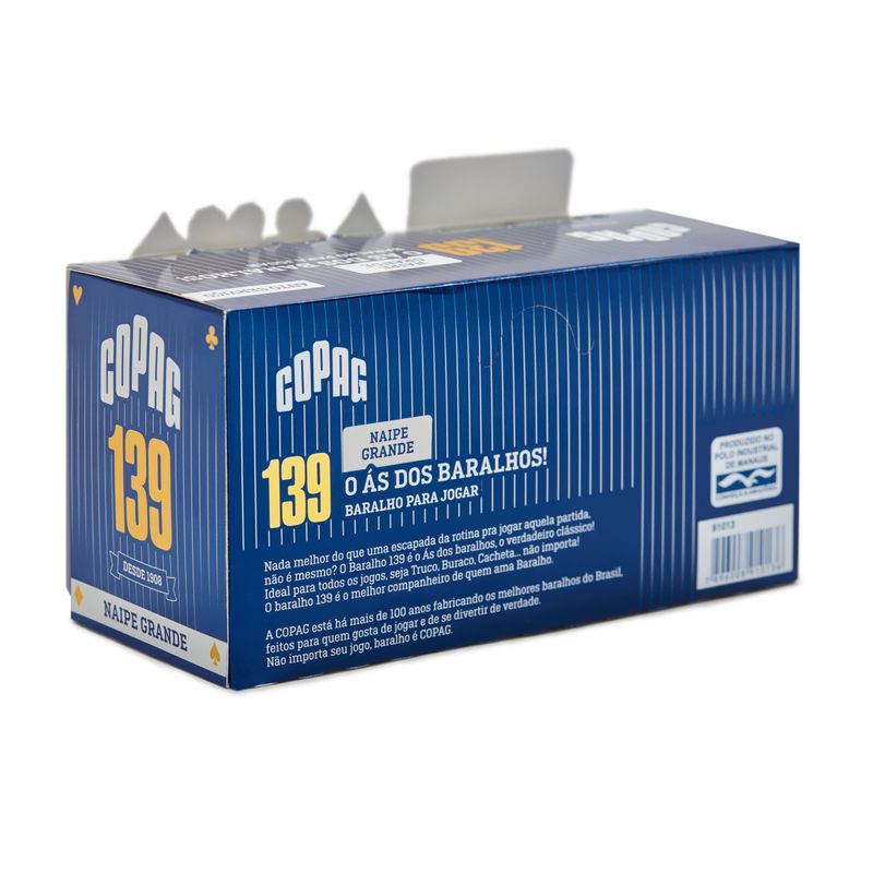 Nada melhor do que uma escapada da rotina pra jogar aquela partida, não é mesmo? O Baralho 139 é o Ás dos baralhos, o verdadeiro clássico! Ideal para todos os jogos, seja Truco, Buraco, Cacheta... não importa! O Baralho 139 é o melhor companheiro de quem ama Baralho.