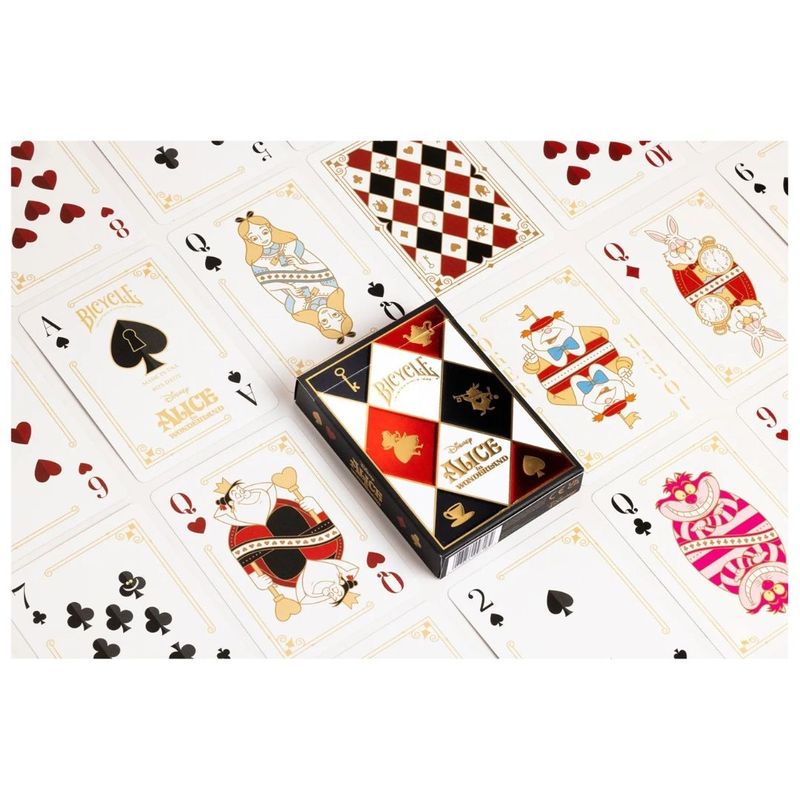 Leve sua próxima festa do chá para o País das Maravilhas com o baralho inspirado em "Alice no País das Maravilhas" da Disney, criado pela Bicycle! A caixa, adornada com luxuosos detalhes em folha vermelha, preta e dourada, exala a grandiosidade digna da corte real da Rainha de Copas. As cartas de figuras, personalizadas, ganham vida com personagens amados como Alice, o Chapeleiro Maluco e o enigmático Gato de Cheshire!