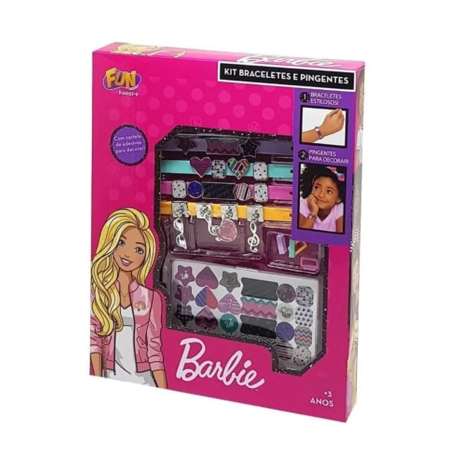 Agora as meninas poderão ficar ainda mais lindas, charmosas e super na moda com o Barbie Kit Braceletes e Pingentes da Fun Divirta-se! Um super kit de criação de braceletes super estilosos e pingentes para decorar, feito especialmente para as meninas liberaram a imaginação e criatividade ao estilo Barbie! Acompanha cartela de adesivos. As meninas vão arrasar por onde passarem!
