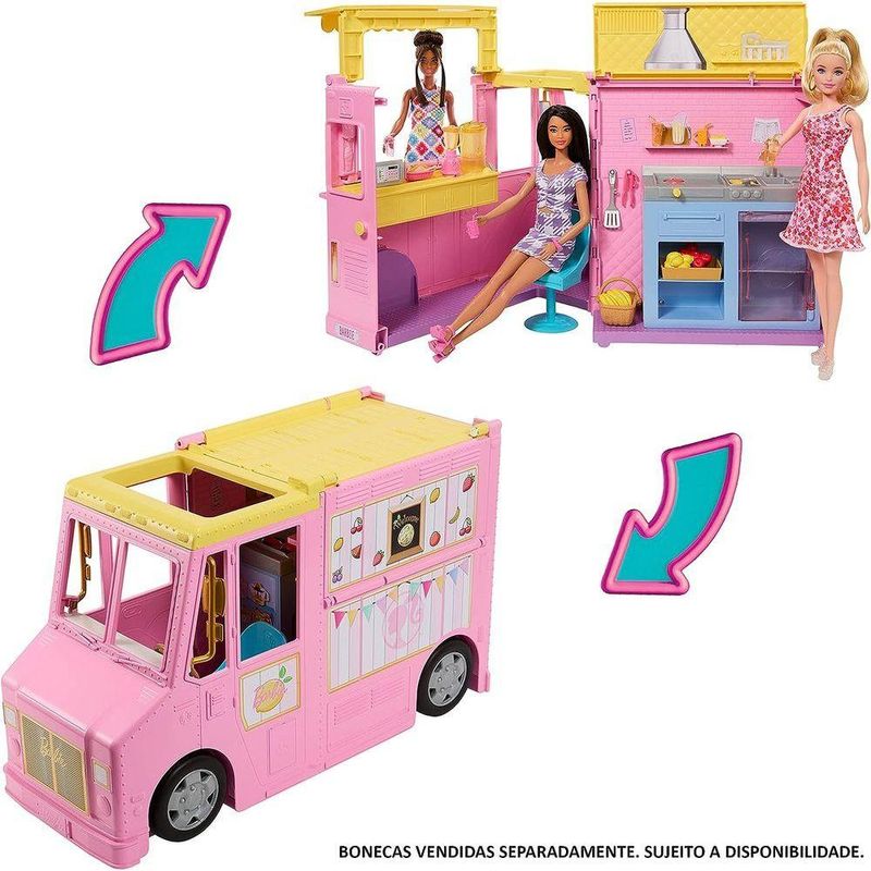 Barbie Caminhão De Limonada - Mattel Hpl71 Bipe, bipe! Com detalhes super fofos, este caminhão de limonada da Barbie tem tudo o que você precisa e muito mais para preparar bebidas geladas de fruta. Ele oferece uma experiência de brincadeira dois em um: abra o caminhão para usar a área de preparação ou feche-o e passeie em um dia quente de verão! A lateral do caminhão se transforma em uma área de refeição ao ar livre com um balcão e uma cadeira. É o conjunto perfeito para uma Barbie que quer abrir o seu próprio negócio de comidinhas!Este conjunto de caminhão de limonada da Barbie inclui 25 peças para narrativa, oferecendo tudo o que uma Barbie pode sonhar para preparar as bebidas mais saborosas da cidade! Boneca não incluída. Com as cores da pink lemonade em tons pastéis rosa, este adorável caminhão é feito sob medida para passear pelo calçadão em um dia ensolarado! Detalhes, como um teto solar, dão ainda mais charme. O lado do motorista se transforma em uma janela de pedidos e uma área de refeição com toldo e balcão de comidinhas. As bonecas podem puxar uma cadeira e beber a sua limonada na sombra! Bonecas vendidas separadamente. Abra o caminhão dois em um para descobrir a área de preparação e todo o seu potencial para a brincadeira! Guarde suprimentos na geladeira, aqueça cachorros-quentes no cooktop, misture bebidas no balcão e muito mais.Acessórios coloridos, como tablet para fazer pedidos, liquidificador, cesta, frutas, espremedor, copos para bebida, cachorro-quente e espátula contribuem para a diversão da brincadeira. Boneca não incluída. As cores e as decorações podem variar.