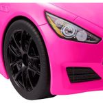 Feito em rosa brilhante o veículo de dois lugares tem o estilo característico da Barbie.