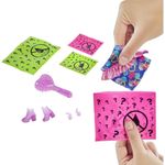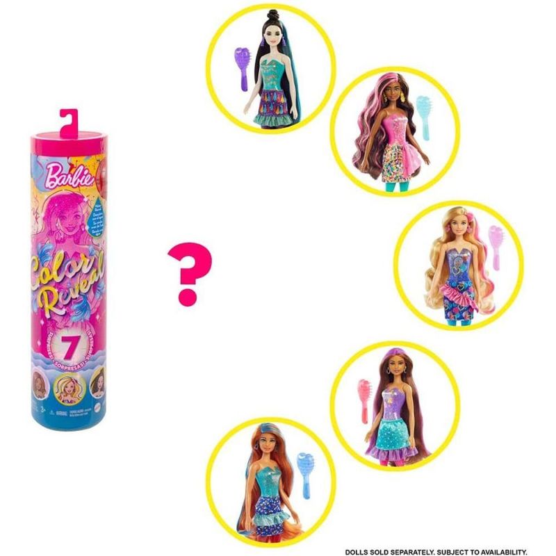 A Série traz uma nova boneca Festa com um estilo particular para curtir grandes eventos com o resto da Barbie Color Reveal . A Mattel apresenta esta nova coleção de figuras de aproximadamente 12 polegadas que incluem 7 surpresas. Entre seus acessórios você encontra uma saia com babados, sapatos, brincos de glitter e uma escova / esponja em formato de coração. Um único produto é enviado cujo conteúdo é totalmente aleatório. Idade recomendada: a cima de 3 anos.