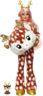 A Boneca Barbie Cutie Reveal proporciona a mais fofa experiência de unboxing com amigos e animais fofos com 10 surpresas inclusas, a diversão se transforma na hora de desembalar o pacote para encontrar um pet mácio e uma boneca Barbie. Abra as 4 bolsas surpresa para encontrar roupas e acessórios: uma saia super brilhante, um par de sapatos legais um pente, uma tiara de orelha de animal e um mini animal de estimação combinando. As crianças podem brincar vestindo as roupas e acessórios, inverta a parte superior da fantasia para encontrar uma jaqueta de lã super macia com uma estampa fofa da moda e mini arcoíris ou corações. A cabeça da fantasia também se transforma em uma cama para o mini amigo de estimação. As surpresas continuam com a fofura da mudança de cor use água gelada para transformar o rosto da boneca Barbie com pintura facial de animal e para abrir e fechar os olhos do mini animal de estimação. Troque de volta com água morna e repita de novo e de novo. A boneca Barbie Cutie Reveal é ótimo presente para crianças de 4 a 10 anos, especialmente aquelas que adoram descobrir surpresas fofas. itens inclusos: 1 Boneca Barbie , 10 acessórios surpresa (incluíndo 1 pet fofo)