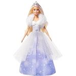 Inspire um conto de fadas da moda com a boneca princesa Barbie© da Barbie ? Dreamtopia! Esta boneca princesa est vestida para uma ocasiÆo real em um vestido em camadas com estampa de floco de neve, cores geladas e muito brilho. Um corpete reluzente com efeito ombr‚ branco a roxo e detalhes em arco ‚ complementado por um encolher de ombros macio e falso. Pressione o botÆo no corpete da Barbie por um momento emocionante, o vestido dela se abrir , revelando flocos de neve prateados e tons de lavanda, azul e rosa! Uma mecha rosa gelo nos longos cabelos loiros da boneca Barbie adiciona um toque de fantasia e uma escova de cabelo ‚ inclu¡da para que jovens imagina‡äes possam ajud -la a se preparar para uma aventura real. f cil realizar sonhos