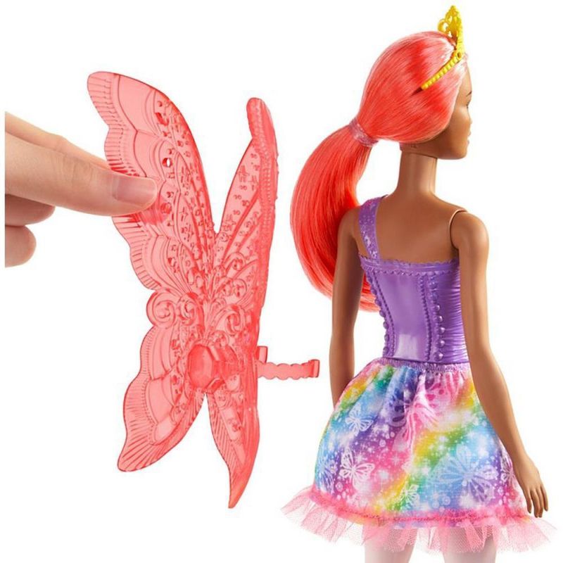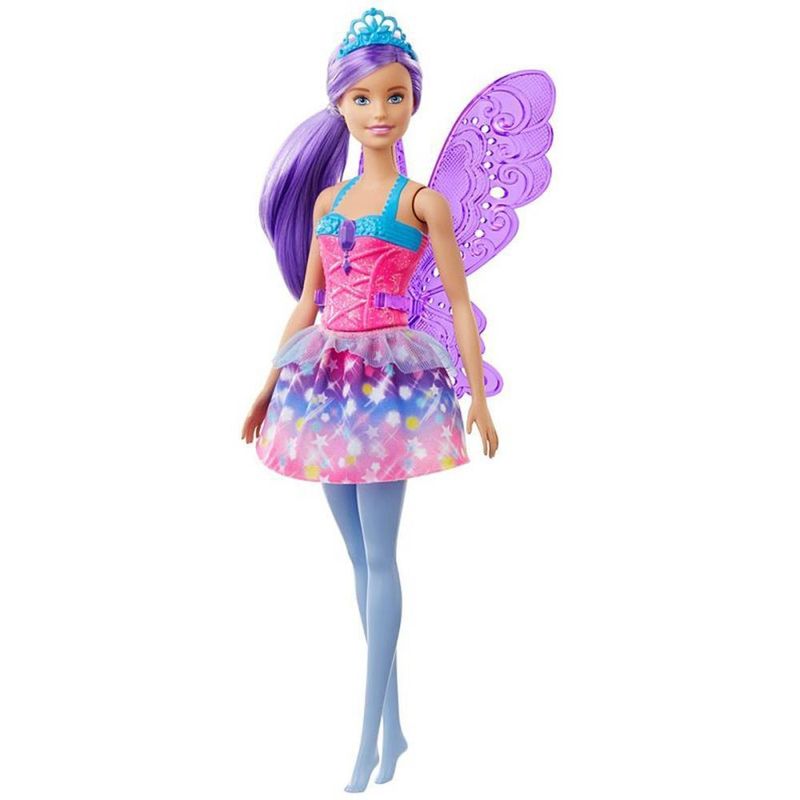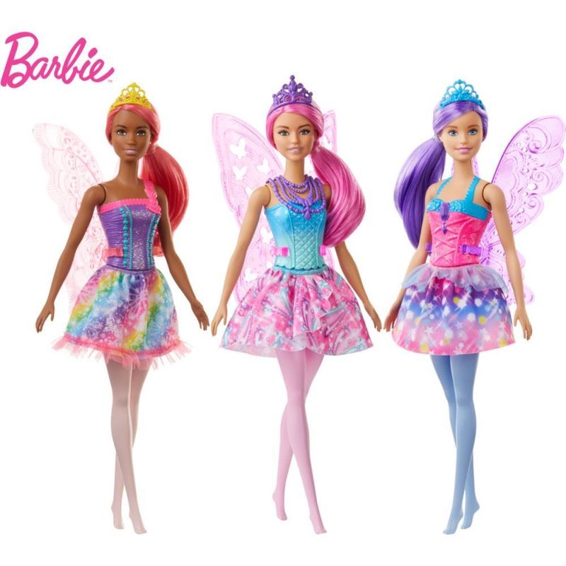 As fadas de Barbie Dreamtopia™ inspiram as jovens imaginações a voaram com asas deslumbrantes e roupas coloridas, perfeitas para uma aventura de conto de fadas! A fada Barbie® usa um corpete brilhante e saia com estampa de arco-íris e detalhes de borboletas. As asas translúcidas dão um toque de cor às histórias e aos sonhos de contos de fadas, e uma tiara pode ser usada com seu penteado rosa preso para completar o visual. É muito fácil brincar com os sonhos e a imaginação com a Barbie®, pois quando você entrar em Dreamtopia vai acordar em um mundo onde os sonhos se tornam realidade! Os amantes de contos de fadas podem colecionar todas as bonecas e os brinquedos Barbie Dreamtopia™, para criar um mundo e deixar seus sonhos voarem. Cada produt