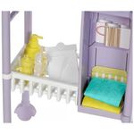 Os itens de brinquedo incluem uma mesa de exame com frasco de loção e outros acessórios, compartimentos móveis e transparentes para os 2 pacientes da boneca.