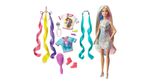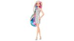 Use as faixas de cabelo incluídas e 2 grampos de cabelo para pentear o cabelo loiro longo, colorido e com mechas de glitter da boneca Barbie® para um visual ainda mais fantástico!