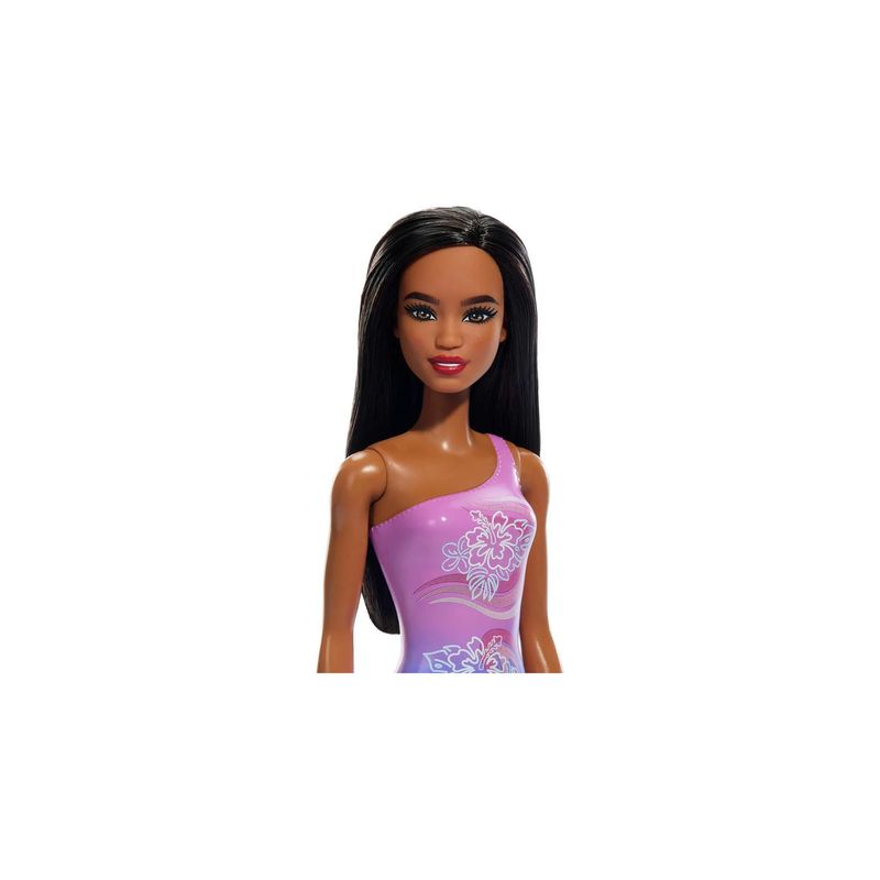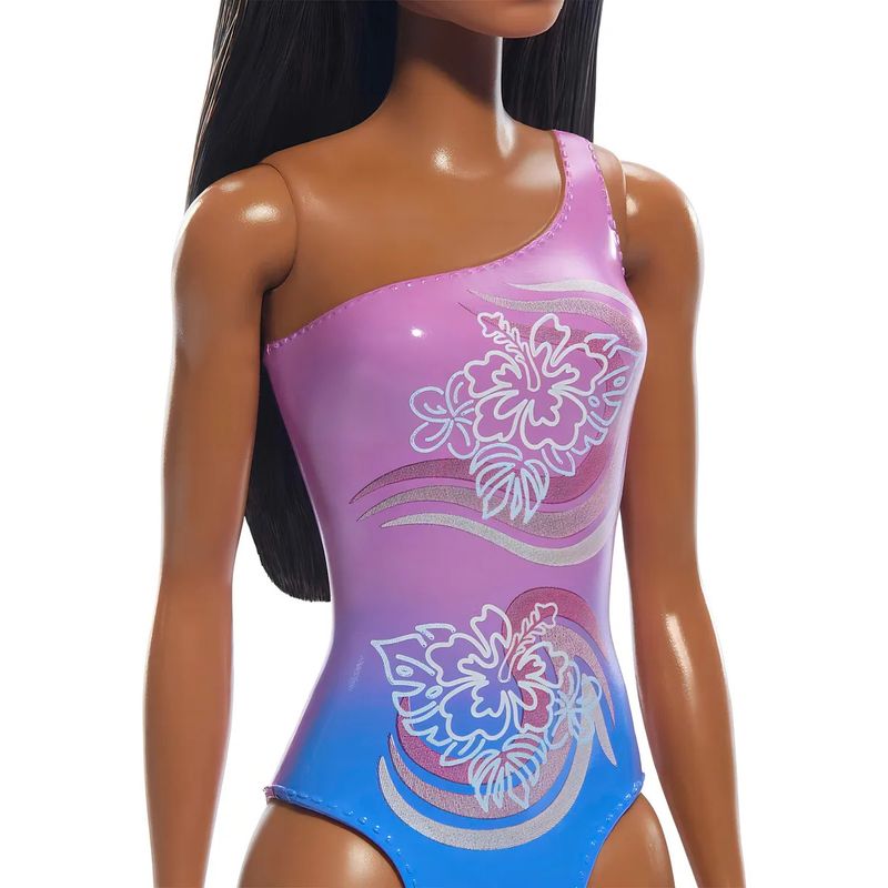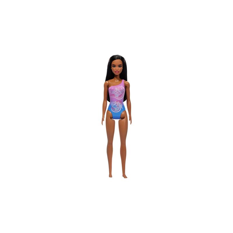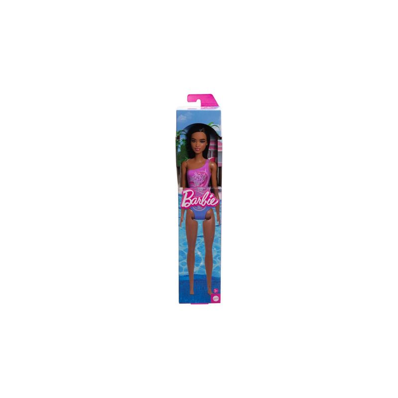 BARBIE PRAIA COM MAIÔ ROXO TROPICAL - MATTELA Barbie Praia com Maiô Roxo Tropical está preparada para curtir dias de sol com muito estilo. Ela veste um maiô de uma peça em tom roxo vibrante, decorado com uma estampa tropical que transmite a energia divertida do verão. Com seus longos cabelos soltos e visual moderno, é a companhia perfeita para brincadeiras criativas à beira-mar, na piscina ou em qualquer aventura ensolarada. Uma boneca cheia de charme que inspira histórias cheias de diversão e imaginação.