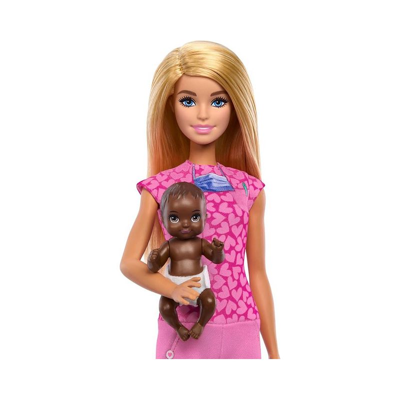 BARBIE PROFISSÕES CONJUNTO DE BRINQUEDO ENFERMEIRA DE CABELO LOIRO COM BEBÊ - MATTELO Conjunto Barbie Profissões Enfermeira da Mattel é ideal para crianças que gostam de brincar de cuidar e ajudar os outros. A boneca vem com cabelo loiro, vestida com uniforme de enfermeira, pronta para cuidar do bebê incluído no conjunto. O kit acompanha acessórios detalhados que estimulam a imaginação e permitem brincar de situações hospitalares ou de rotina de cuidados com crianças, incluindo mamadeira, estetoscópio e um mobile para o bebê. Com esses itens, as crianças podem simular desde dar alimentação ao bebê até checar sua saúde, tornando a brincadeira divertida e educativa. Este conjunto incentiva o desenvolvimento da coordenação motora, habilidades de raciocínio e empatia, enquanto as crianças recriam histórias e aprendem sobre a importância das profissões de cuidado. Perfeito para brincar sozinho ou em grupo, o Conjunto Barbie Enfermeira proporciona horas de diversão criativa, permitindo que os pequenos explorem sua imaginação e vivenciem a experiência de ser uma enfermeira de verdade.
