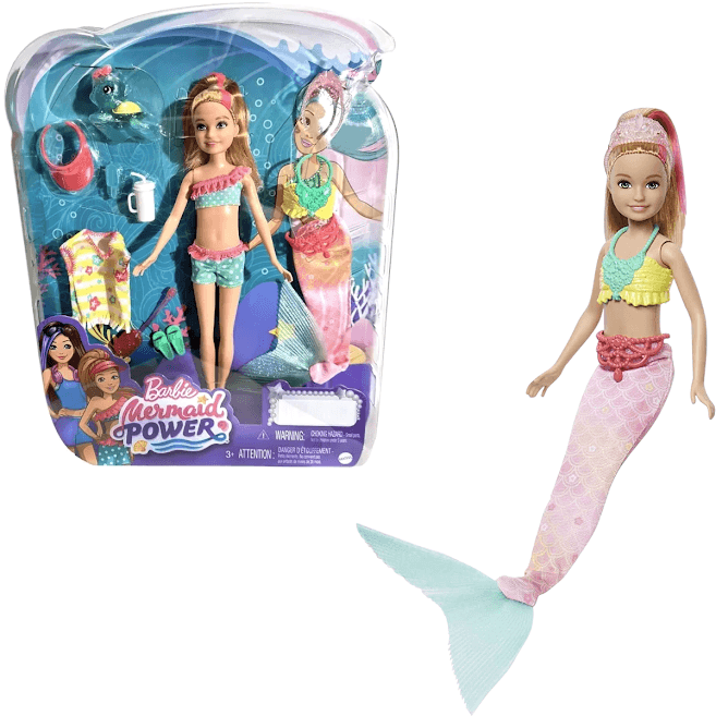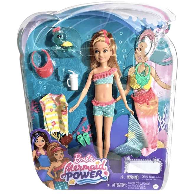 Mergulhe em aventuras de contar histórias com a boneca Stacie inspirada na Barbie Mermaid Power, com 2 looks para o dobro da diversão de contar histórias!