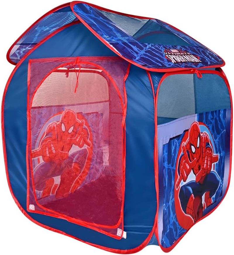 A Barraca Infantil Cabana Tenda Para Crianças Menino Homem Aranha Marvel Cabaninha Portátil Dobrável Zippy Toys Azul oferece uma estrutura leve em metal e tecido poliéster, com sistema de montagem pop-up que abre sozinha e teto solar removível. Possui duas janelas laterais e porta frontal de enrolar para ventilação, com capacidade para até duas crianças.