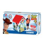 Casinha Toy Story em tecido decorado, sustentado por hastes.