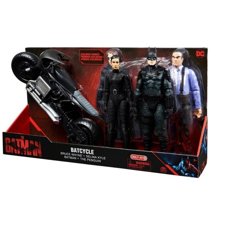 - O Pacote Batcycle Exclusivo do Batman com 4 Figuras do Batman é um item obrigatório para os fãs do Batman! Agora você pode expandir sua coleção do Batman de uma só vez com Batman, Bruce Wayne, Selina Kyle e The Penguin com este pacote! Proteja Gotham City com a figura do Batman corra para a ação no Batman Batcycle, com esculturas autênticas no estilo de filme que darão vida às suas aventuras do Batman! Este conjunto tem tudo o que você precisa para envolver sua imaginação e criar aventuras épicas do Batman. Este conjunto icônico é um brinquedo obrigatório para meninos, meninas e fãs do Batman! Os fãs do Batman de todas as idades vão adorar os recursos interativos do Batcycle e as figuras de ação detalhadas do Batman. Colecione todos os seus personagens favoritos do filme The Batman para recriar cenas do filme ou envolva sua imaginação e crie suas próprias aventuras épicas.