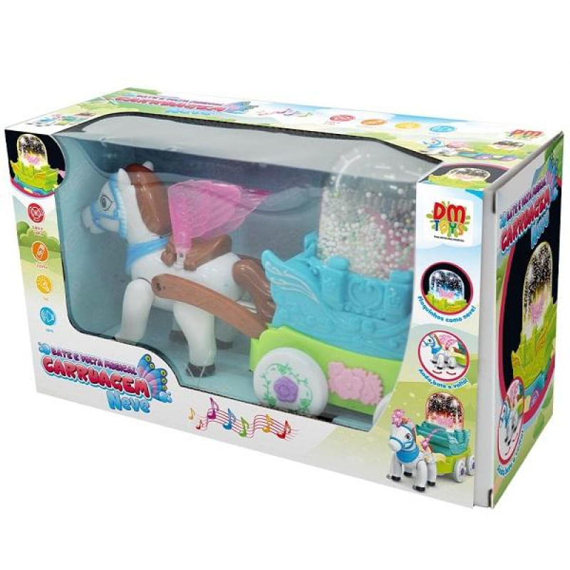 O brinquedo bate e volta musical carruagem neve é lindo! Possui som, luz, floquinhos como neve, além do sistema bate e volta que é super divertido. Você irá se encantar.