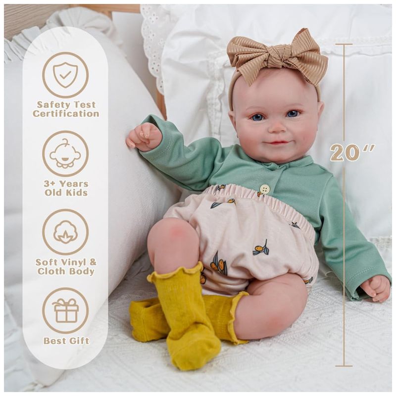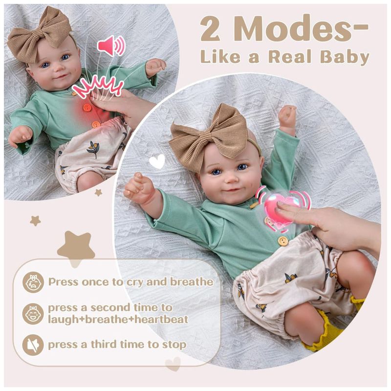 Experimente a alegria de uma interação genuína com nossa boneca Reborn sorridente. Com batimentos cardíacos simulados, respiração realista e sons adoráveis, esta boneca fofa proporciona uma experiência incrivelmente realista, fazendo com que pareça que você está cuidando de um bebê de verdade. Feita com uma atenção meticulosa aos detalhes, esta boneca de 50cm possui uma qualidade de artesanato incomparável. Dos traços delicados do rosto à suavidade da pele, cada aspecto é projetado para imitar o realismo de um recém-nascido. Feita com vinil de alta qualidade com um corpo de pano, garantindo durabilidade e longevidade. O toque suave e textura semelhante à pele não só traz alegria ao toque, mas também é resistente ao desgaste, garantindo que seu investimento trará alegria por muitos anos. Um presente perfeito para todas as idades, seja como presente para uma criança, um chá de bebê ou um gesto carinhoso para um ente querido, a boneca de bebê recém-nascido é um presente universalmente apreciado. Suas características realistas e presença comovente a tornam uma escolha excepcional para presentear, trazendo sorrisos para faces de todas as idades. Inclui 1 conjunto de roupa, 1 chupeta magnética, 1 certidão de nascimento, 1 conjunto de chocalhos, 1 mamadeira, 1 fralda, 1 caixa de presente e 1 caixinha de batimentos cardíacos (bateria não incluída).