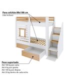 - Peso suportado: 100 kg por cama/ 100 kg em cada degrau.