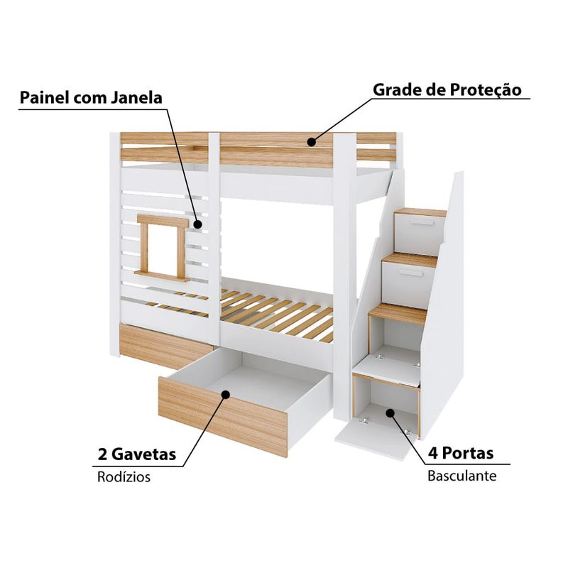 Beliche Infantil Star Plus com Janela Branco/Montana - Casatema