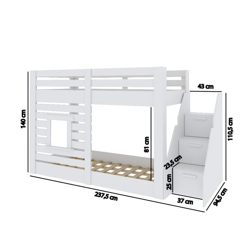 - Peso suportado: 100 kg por cama/ 100 kg em cada degrau.