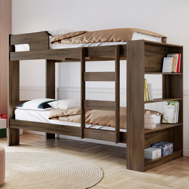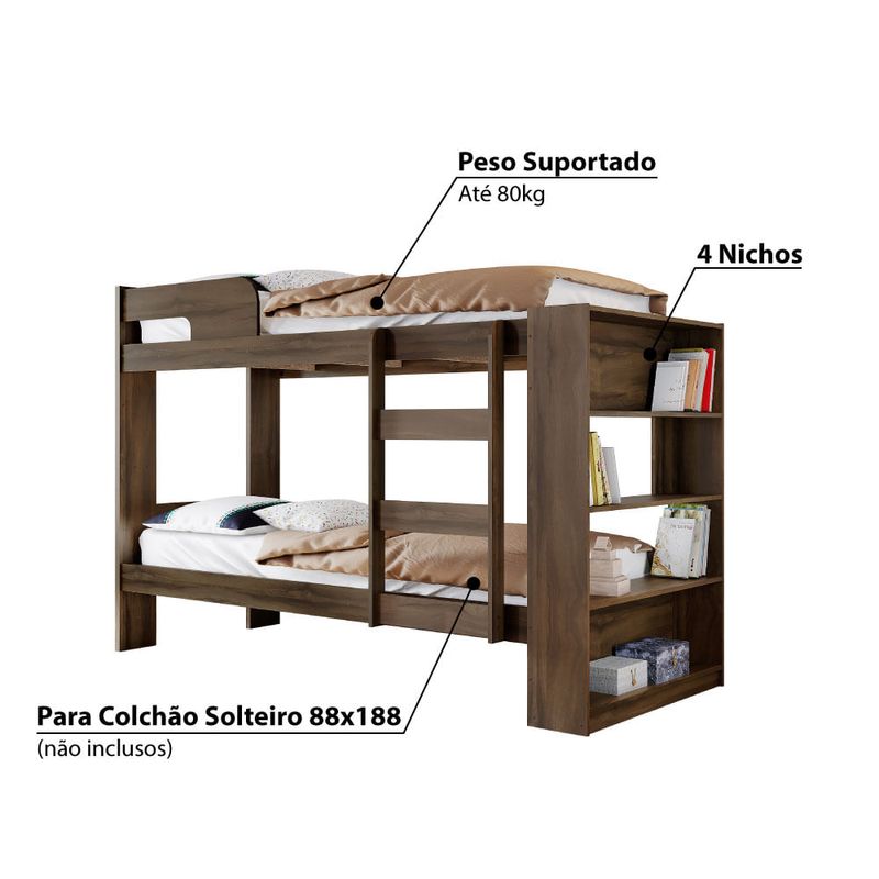 A Beliche Neo é ideal para você que esta buscando otimizar o espaço do quarto com elegância. Com seu acabamento moderno em pintura UV, traz um ar inspirador para o quarto. A Beliche acompanha uma estante de 4 nichos, ótima para guardar e organizar livros, acessórios e objetos diversos, otimizando mais ainda o espaço e a decoração. Tamanho solteiro, para colchões 88x188 (não incluso).