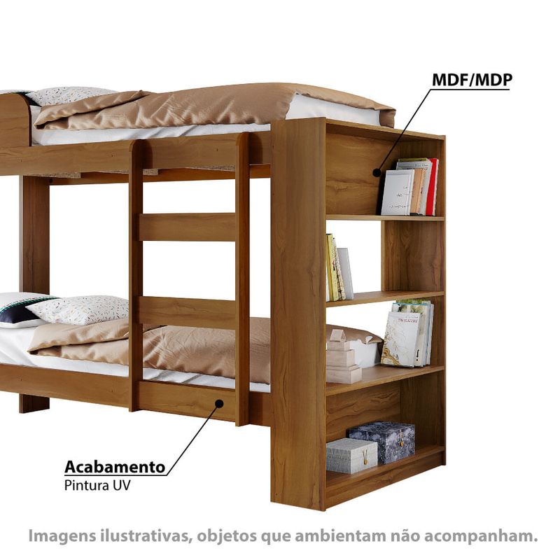 A Beliche Neo é ideal para você que esta buscando otimizar o espaço do quarto com elegância. Com seu acabamento moderno em pintura UV, traz um ar inspirador para o quarto. A Beliche acompanha uma estante de 4 nichos, ótima para guardar e organizar livros, acessórios e objetos diversos, otimizando mais ainda o espaço e a decoração. Tamanho solteiro, para colchões 88x188 (não incluso).