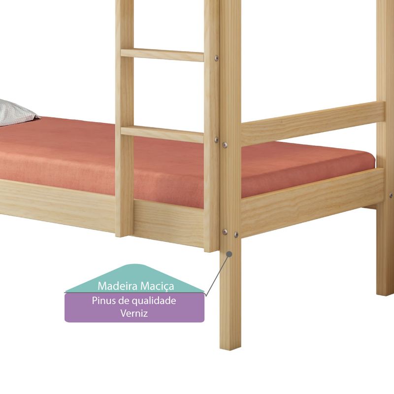 Material - Estrutura toda em madeira maciça clear, ou seja, madeira selecionada de alta qualidade, sem nós. Todo em verniz, dando aquele toque macio e acabamento de qualidade no produto.